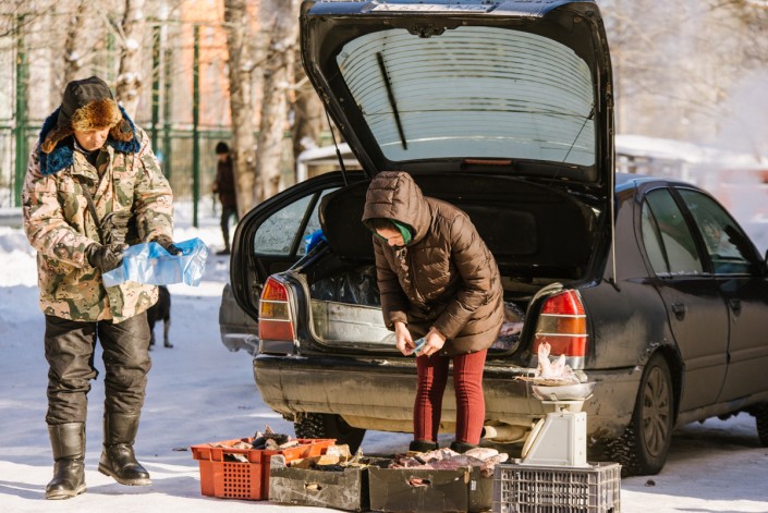 Как и сейчас, стоял мороз. На улице торговали закоченелыми тушками гусей. Продавцы в унтах переминались с ноги на ногу. В это время по телевизору только начиналась "Ирония судьбы, или С легким паром!". Показывали как раз тот момент, где друг главного героя ходил по рынку и спрашивал: "А апельсинчиков у вас нет?"
