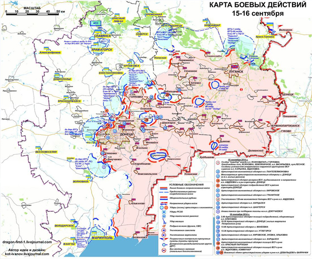 В свою очередь, Киев утверждает, что режим прекращения огня нарушают не украинские военные, а террористы, которые продолжают обстрелы позиций сил АТО. "На протяжении суток зафиксированы обстрелы в Донецкой области - в районе населенных пунктов Пески, Красногоровка, Марьинка, Александровка, Новомихайловка, Тоненькое, Малоорловка, Орлово-Ивановка, Нижняя Крынка, Центральный, Гранитное, Дебальцево, Донецкое, Староигнатовка. В Луганской области террористы обстреляли населенные пункты в районах Горное, Золотое, Ореховое, Чернухино, станица Луганская, Северодонецк и города Счастье", - сообщил представитель информационно-аналитического центра СНБО Андрей Лысенко, представляя сводку за 17 сентября.