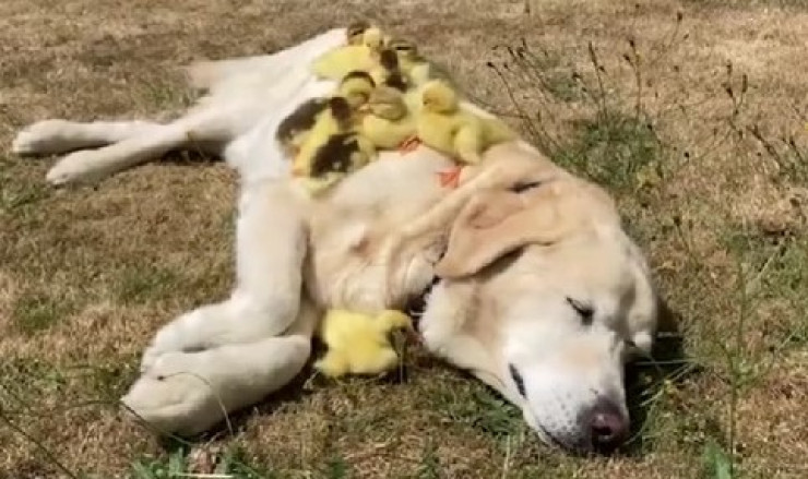 Лабрадор взял на воспитание 15 осиротевших утят Кадр с видео.