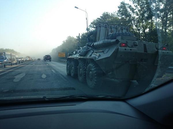 "Дорога из Ростова в местный Донецк: колонна с БТР, минометом и заправщиками". @AksenovBBC