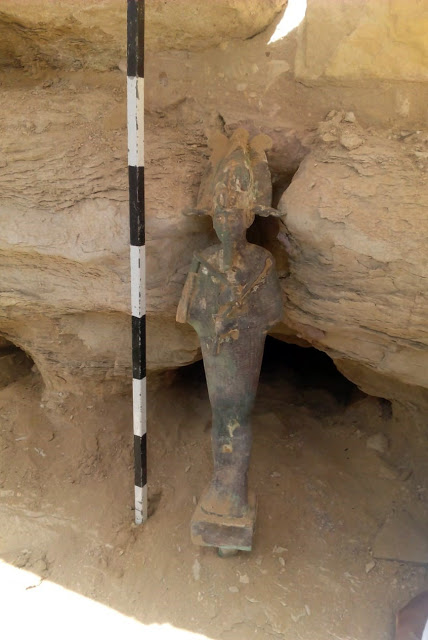 "Статуя была найдена у западного склона пирамиды, в щели между каменными блоками, когда археологи начали расчищать песчаные завалы и убирать мусор. На ней изображен Осирис, бог подземного мира и возрождения, держащий в левой руке перо, а в правой - скипетр", - заявил Мустафа Вазири, глава Высшего совета Египта по делам древностей.