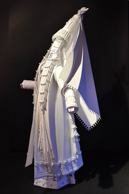 Модельер создает платья из бумаги невероятной красоты. Все началось с обычных кукол. "Бумага передает чистую, красивую градацию светотени. Для больших костюмов я использую ватман, для маленьких кукол более белую бумагу. На одну работу уходит месяц", - говорит Козина.