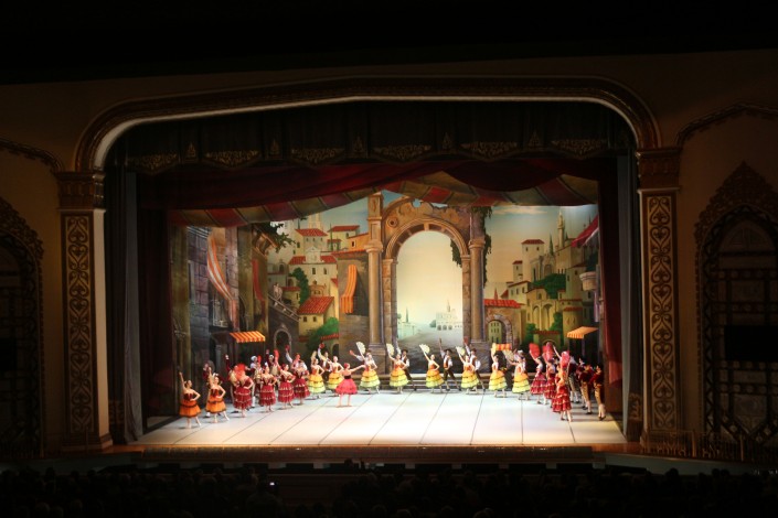 На какое-то время зритель театра переносится в шумную и праздничную атмосферу Испании - с ее тореадорами, торговцами и уличными гуляньями.