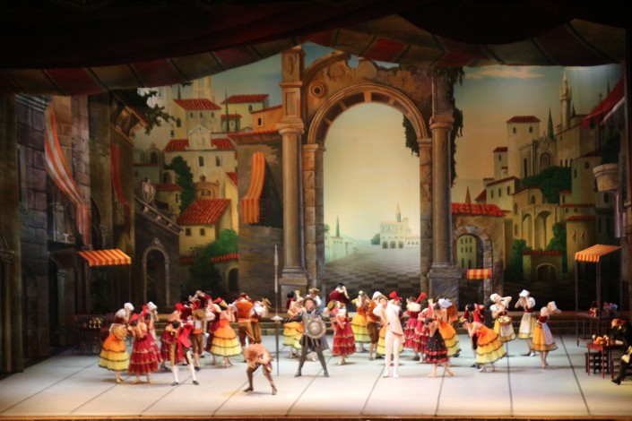 В балете Дон Кихот является второстепенным персонажем, а сюжет сосредотачивается на любовной истории Китри и Базиля, исполняющих свои вариации на городской площади.