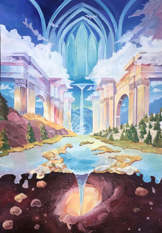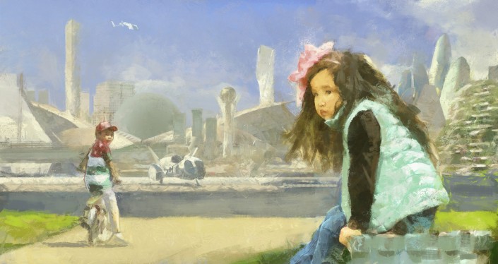 А Данияр Кдыров нарисовал весну в Нур-Султане будущего. Но центральное место на его рисунке заняли образы детей.
