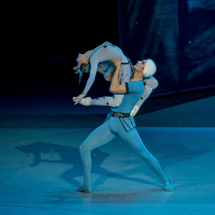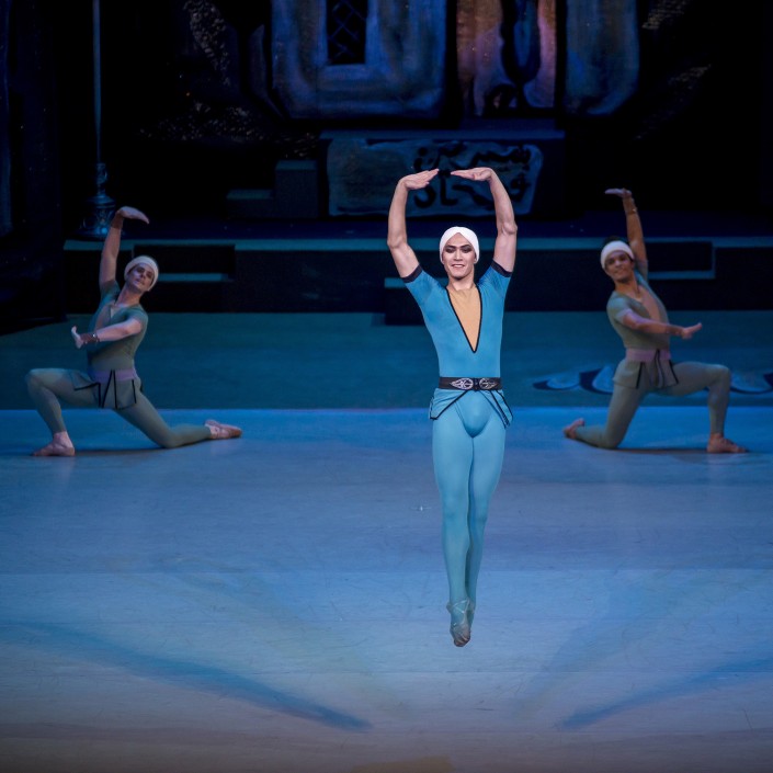 Ведущий солист театра "Астана Балет" Фархад Буриев, которому самой судьбой суждено исполнять партии прекрасных принцев, в амплуа художника Ферхада проявил бесподобную технику и масштаб артистической личности. Его герой, ставший невольным узником безответной любви царицы, тем не менее вырывается из-под ее власти, когда отрекается от любви и решает добыть воды для страдающего народа.
