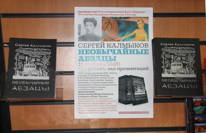 "В этой книге впервые представлено полное собрание рукописей - "Необычайных абзацев" Калмыкова, цитаты из которых стали очень популярны. Все написанное сопровождается иллюстрациями, то есть картинками самого автора. В тексте художник описывает свое отношение к событиям, свидетелем которых ему довелось быть", - сказал на презентации президент фонда "Евразия" и директор Оренбургского книжного издательства имени Донковцева Игорь Храмов.