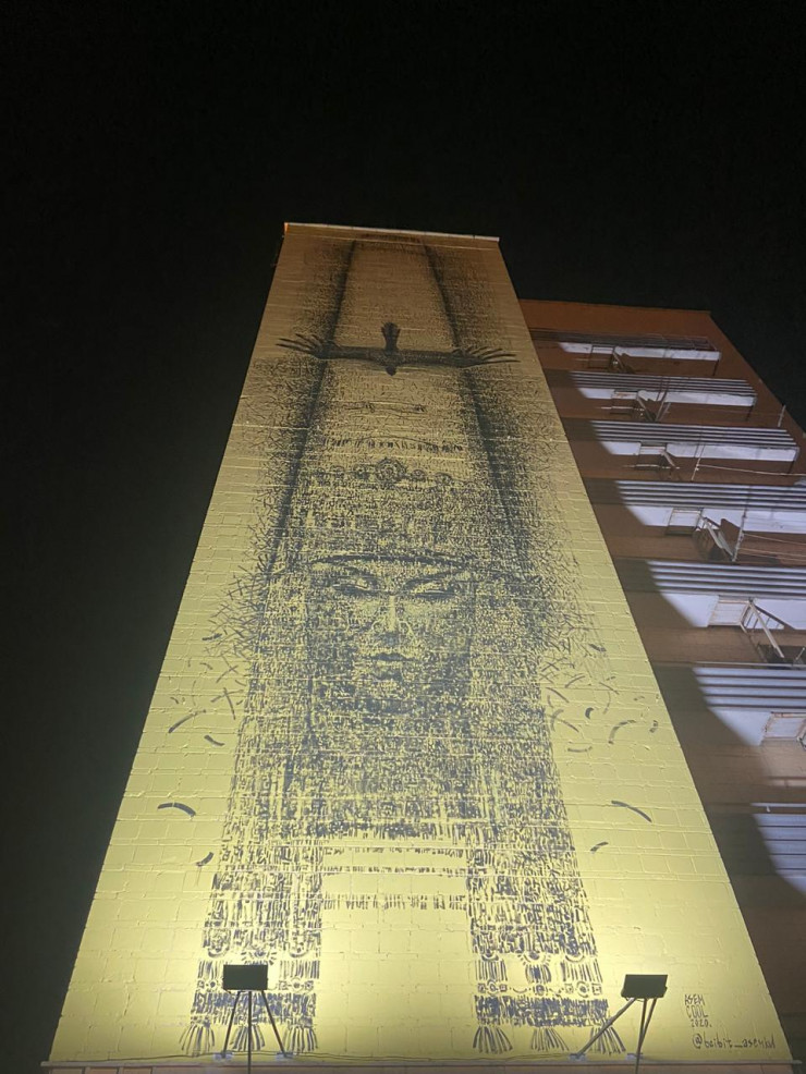 Граффити нарисованы по проспекту Сарыарка, на домах 38 и 42. Автором работ является художник Бейбит Асемкул.