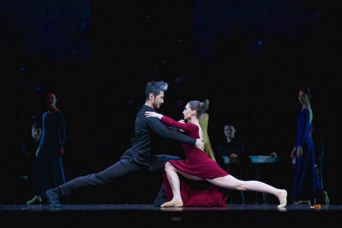 Кордебалет был призван показать суетность этого мира. В каждодневной гонке по кругу - работа, дела, дом - люди теряли себя. И снова музыка помогла это понять: хореографический текст массовой сцены совсем не ложился на мелодию, тогда как двое влюбленных в это же время гармонично двигались, попадая в такт, таким образом, было понятно, что влюбленные ценили данное им счастье быть вместе.