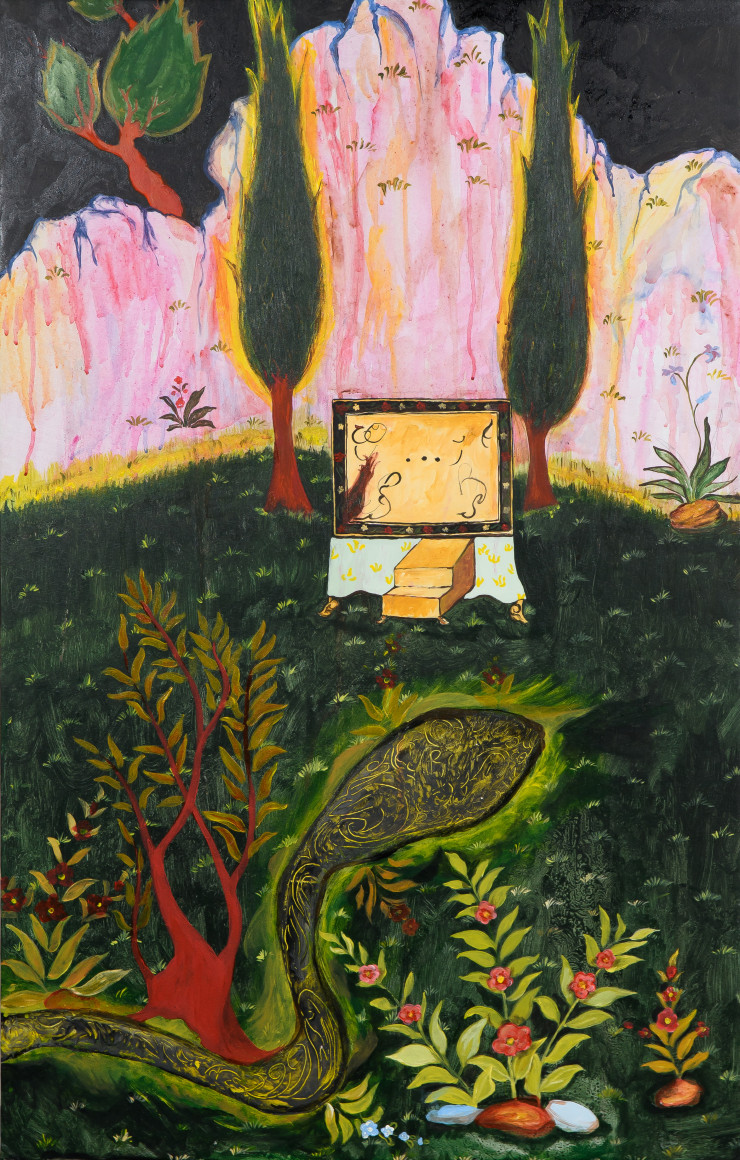 Специально для выставки Бахыт Бубиканова создала серию живописных работ в стиле восточной миниатюры, которая будет ждать зрителей в пространстве бара-будуара, а также новое видео, посвященное преподавателю художницы Молдакулу Нарымбетову, и монументальную инсталляцию, в которой автор рассматривает эстетику типичного советского забора, ее можно будет увидеть во втором зале.