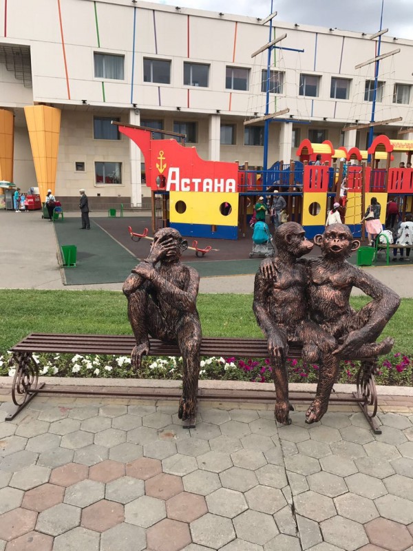 На центральной набережной столицы появилась скамейка с "тремя обезьянами".