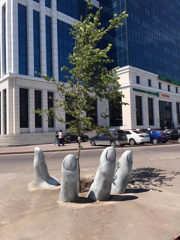 На пересечении проспектов Сарыарка и Абая установлена инсталляция в виде руки, держащей в ладони дерево. Данное архитектурное произведение, отмечают власти города, символизирует заботу о природе, отмечает важность озеленения городов и мегаполисов.