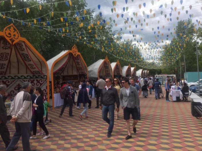 Вдоль набережной реки Есиль близ памятника Кенесары хану установлены ханские юрты и полуюрты. Под каждым шаныраком создаются эксклюзивные и уникальные изделия, демонстрируются мастер-классы по валянию войлока, резьбе по дереву, ювелирной работе по серебру, гончарному искусству, росписи оловянных коллекционных солдатиков. А особая атмосфера набережной реки Есиль делает это место поистине любимым и народным", - отметили в акимате.