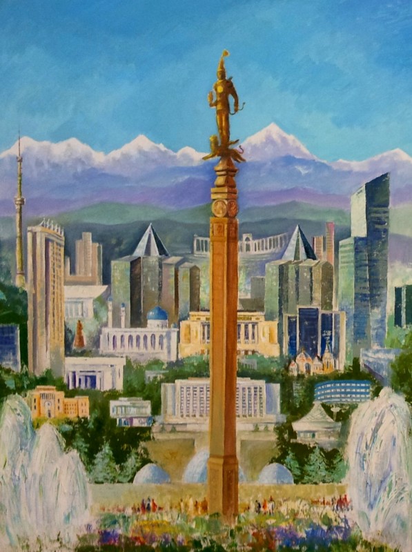 Как стало известно, художественная работа была выставлена на экспозиции, организованной Союзом художников Казахстана в честь 25-летия Независимости РК.