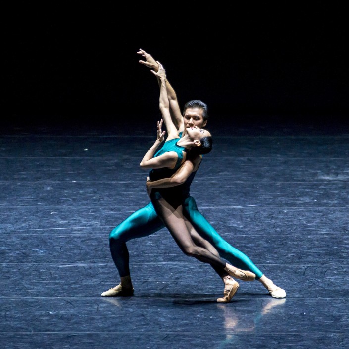 Театр "Астана Балет" представил на концерте два отрывка из современных балетов. In the middle somewhat elevated Уильяма Форсайта – это уже классика современного танца, но подвластна эта "технология импровизации" не всем, не всякая труппа может похвастаться наличием в репертуаре этого несомненного шедевра современного танца. Ведущие солисты театра Айнур Абильгазина и Фархад Буриев танцуют этот спектакль с первых дней его появления в репертуарной афише и каждый раз, как в омут, окунаются в атмосферу сиюминутной импровизации, мгновенных реакций и отваги. Каждый раз получается по-разному. Публику эта хореография завораживает, несмотря на полное отсутствие сюжета, зал будто замер и тут же взорвался громом аплодисментов.