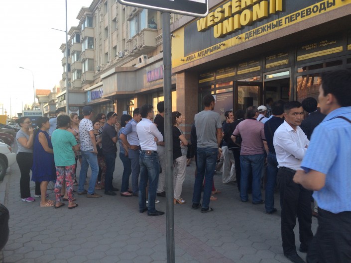 В другом - образовалась очередь. Люди поясняют - все потому, что в других обменниках по проспекту Республики не продают доллары, или обменные пункты и вовсе закрыты. Спрашивают друг у друга - держится ли покупка и продажа в прежнем диапазоне. Звучит ободрительное "да". И продолжают дожидаться своей очереди. Прохожие, увидев скопление людей, подходят, интересуются, а некоторые остаются также занимать очередь...