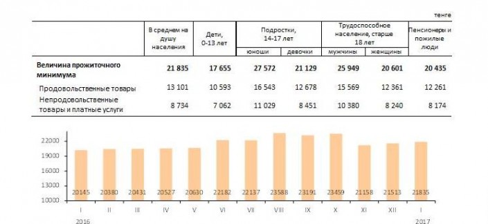 составила 21 835 тенге. Из них 13 101 тенге предусмотрено на продукты питания, остальные 8 734 тенге на непродовольственные товары и платные услуги.