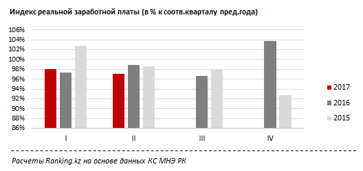 Как напоминают аналитики, в январе-марте текущего года годовое падение стоимости зарплат в Казахстане составило 2 процента.