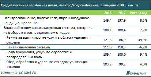 В электротеплоснабжении среднемесячные заработные платы составляли во втором квартале 149,4 тысячи тенге - на 8,3 процента больше, чем годом ранее.