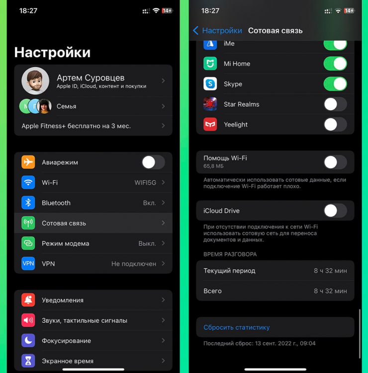 - Как настроить: откройте раздел "Настройки" – "Сотовая связь" и в самом низу списка отключите тумблер "Помощь Wi-Fi".