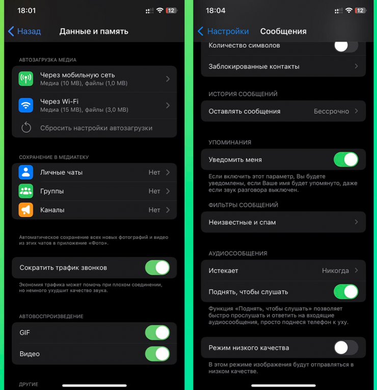Аналогичные опции есть и в популярных мессенджерах. Так вы сможете отключить автозагрузку больших файлов, включить сжатие трафика при аудио- или видеовызовах.