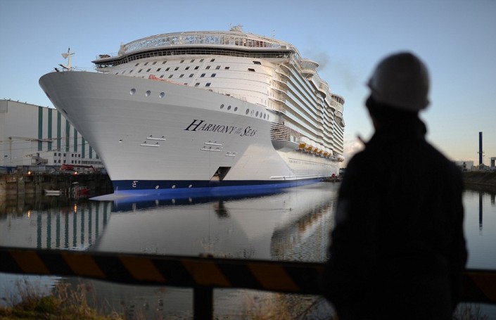 Во французском порту Сен-Назер спущен на воду круизный лайнер "Гармония морей" (Harmony of the Seas), который на сегодняшний день является самым большим в мире пассажирским судном, сообщает The Telegraph.