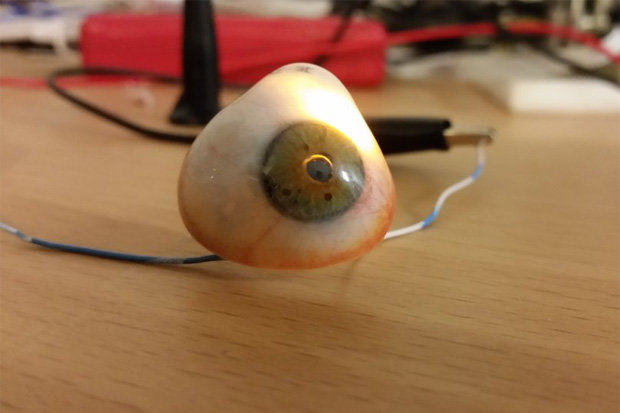 Установленная в глазнице камера выглядит как глаз с радиочастотным передатчиком. Она не подключена к нервным окончаниям, и Роб управляет ею с помощью магнита.