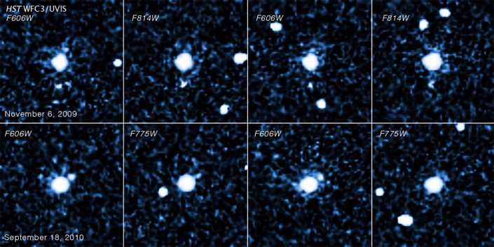 Руководствуясь этой идеей, астрономы проанализировали архивные фотографии 2007 OR10, полученные "Хабблом" и "Спитцером" за последние десять лет. К их большому удивлению, им очень быстро удалось найти луну 2007 OR10, которую можно легко увидеть на сразу нескольких снимках с "Хаббла", полученных в 2009 и 2010 годах.