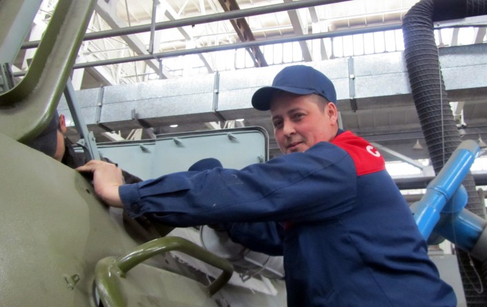 Предприятию более 40 лет. Сегодня здесь трудятся около 400 человек. Трудовые династии - показатель стабильности любого предприятия, в том числе и "Семей инжиниринг". Ильдар Нуриахметов работает здесь слесарем по ремонту боевых спецмашин. "Я пришел в 1995 году, глядя на своего отца. Он работает здесь гораздо дольше. А позже сюда устроился и мой братишка. Так мы и работаем здесь втроем. Работа нравится. Не слишком тяжелая, но очень ответственная. После того как мы соберем, технику уже проверяют испытатели. Я горжусь, что принимаю участие в таком важном производственном процессе".