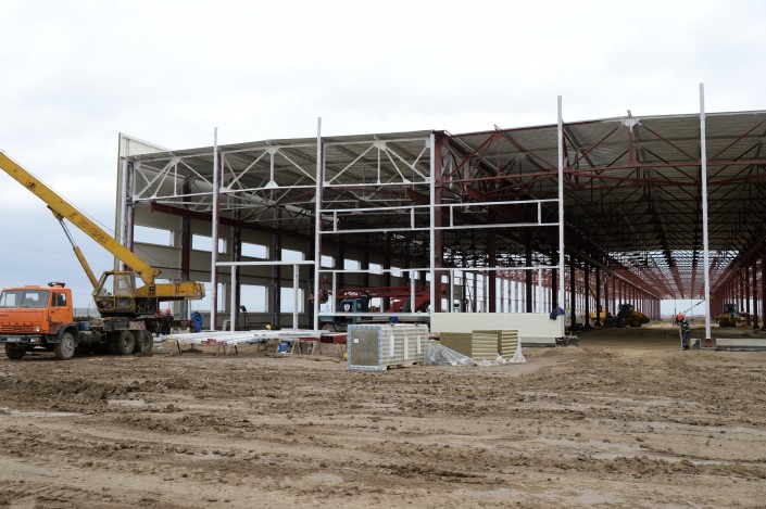 Строительство проекта стартовало весной 2015 года. На сегодняшний день завершены фундаментные работы склада готовой продукции, выполнена разработка грунта в котловане, осуществлен монтаж стеновых сэндвич-панелей, ведется монтаж кровли и так далее. На объекте задействованы 36 единиц специальной техники, 229 рабочих.