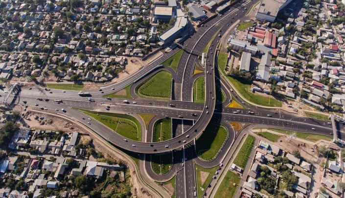 В Алматы открыто движение по новой трехуровневой развязке, построенной строительной компанией "БАЗИС", входящей в группу компаний "БАЗИС-А", из монолитного железобетона в Алатауском районе на пересечении улицы Саина и проспекта Рыскулова. Транспортная развязка представляет собой комплекс сооружений с девятью съездами, включающий эстакаду длиной 311 метров и транспортный путепровод под проспектом Рыскулова по улице Саина, имеющий длину более 36 метров. Проезжая часть по проспекту Рыскулова и по улице Саина имеет по 6 полос движения. Пропускная способность развязки - 250 тысяч автомобилей в сутки.