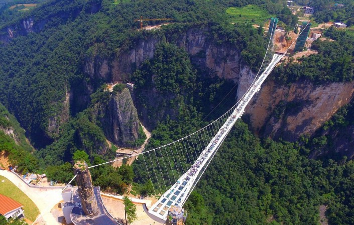 В субботу, 20 августа, в китайской провинции Хунань официально открылся самый длинный и самый высокий в мире стеклянный мост, сообщает China News Service