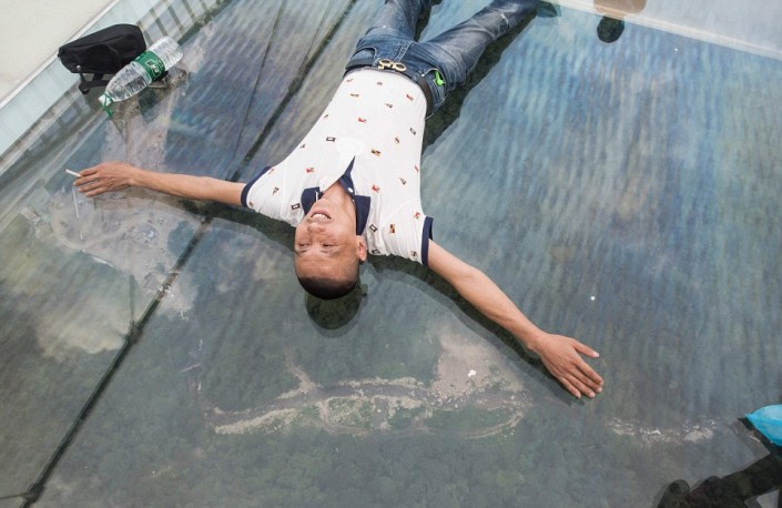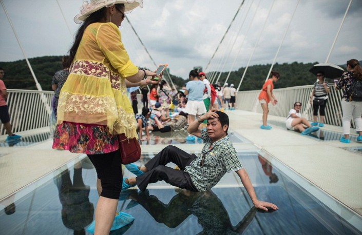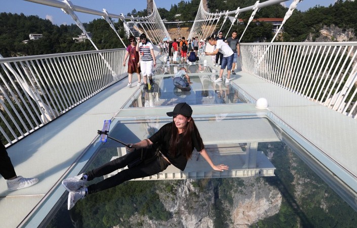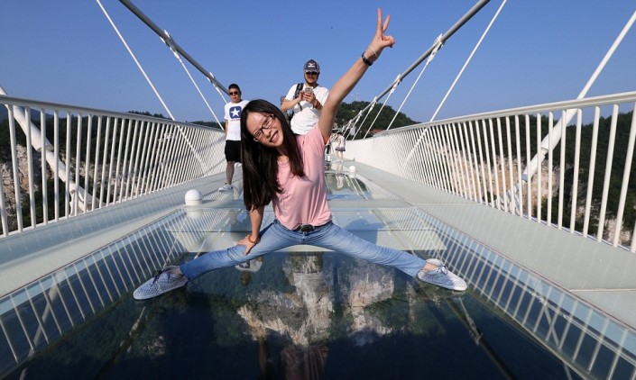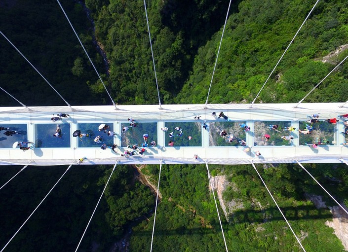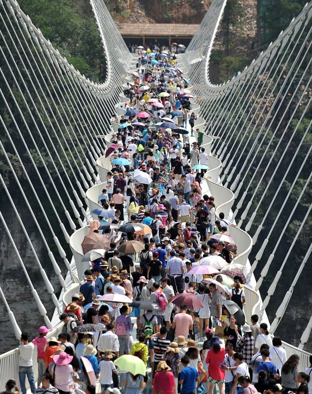 На церемонию открытия собралась огромная толпа. Несколько тысяч человек пришли, чтобы первыми ступить на прозрачную конструкцию, несмотря на довольно дорогой входной билет (138 юаней или около 20 долларов). Прежде чем пустить людей на мост, организаторы продемонстрировали прочность стеклянных панелей ударами кувалды.