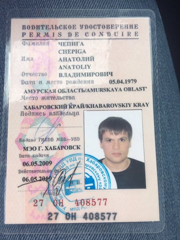 "Согласно базе данных страховых полисов ОСАГО, данное водительское удостоверение действительно числится за Чепигой Анатолием Владимировичем", - говорится в сообщении группы.