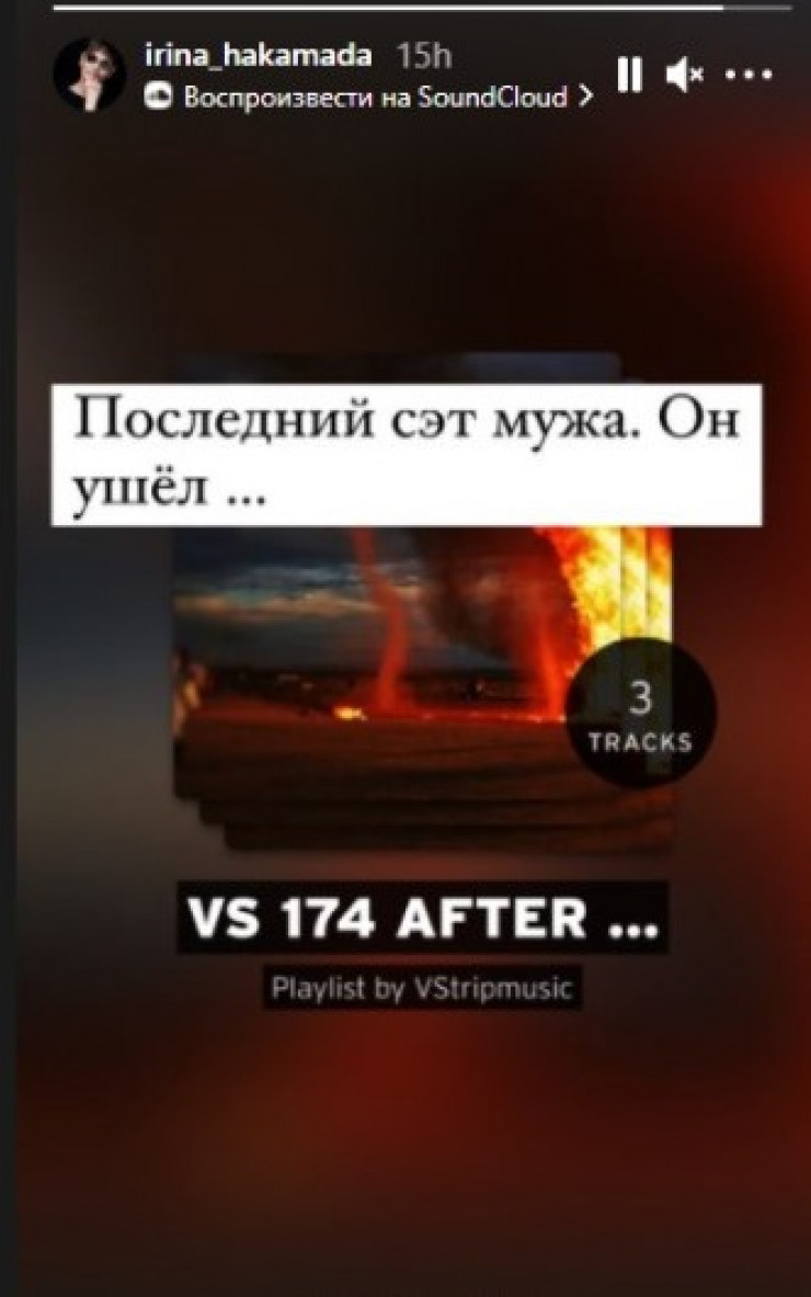 В ночь с 14 на 15 сентября Хакамада опубликовала в Stories ссылку на подборку музыки, подписав ее: "Последний сэт мужа. Он ушел…".