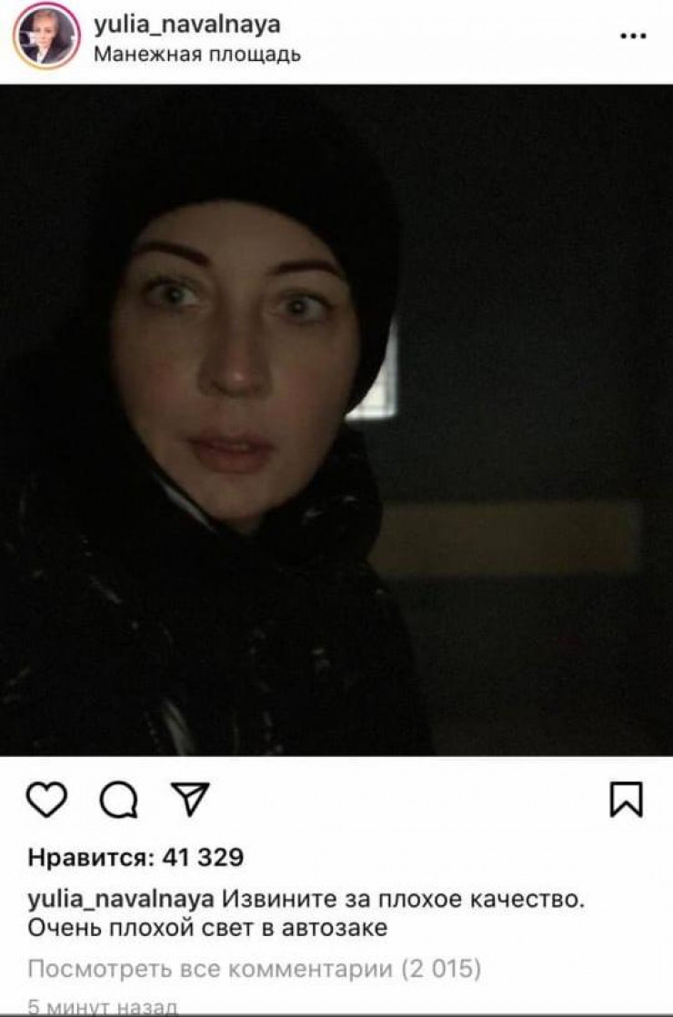 "Извините за плохое качество. Очень плохой свет в автозаке", - написала она в своем Instagram, комментируя соответствующее фото.