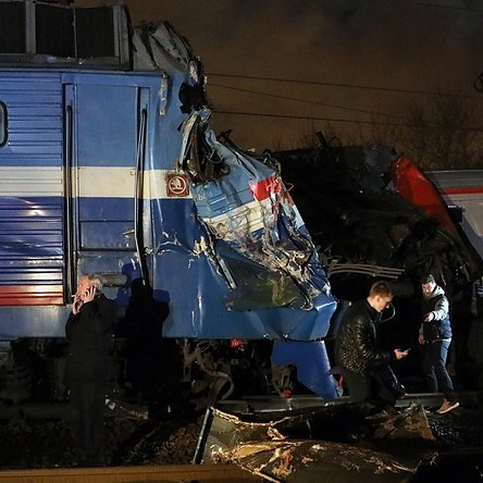По данным МЧС, машинист электрички, который столкнулся с поездом, применил экстренное торможение из-за человека, перебегающего железнодорожные пути. По другим сведениям, никакого перебегающего человека не было.