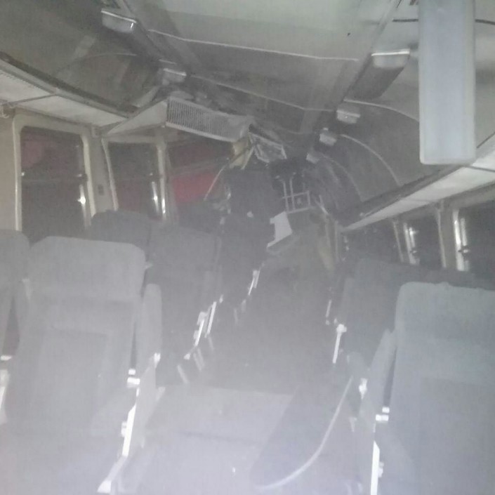 Как говорят очевидцы, от столкновения электрички и поезда вагон электропоезда оказался разорван пополам. Половина его одним краем осталась лежать на рельсах, а другая попала в овраг.