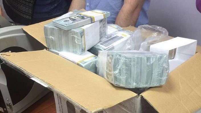 Портал Znak.com сообщает, что, согласно данным минфина США, один миллион долларов в 100-долларовых купюрах весит около 10 килограммов. Соответственно, 120 миллионов долларов должны весить около 1 200 килограммов. Согласно данным сайта Pagetutor, 100 миллионов долларов в 100-долларовых купюрах выглядят примерно вот так: