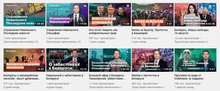 Одан бөлек Навальный түрлі аймақтағы митингілерге қатысты пікірін білдірген. Оның ішінде Беларусь, Хабаровск пен Куштаудағы нарызылық шаралары бар. Оппозиционер Беларусьтегі митингіге көп көңіл бөлген. Соңғы бірнеше күнде оның каналында көрші елдегі наразылыққа қатысты алты видео жарияланған.