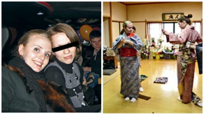 На дне рождения подруги, Москва, 2013 год (фото слева). Мария (слева) берет урок японских танцев, Токио, 2009 год (фото справа). © thenewtimes.ru