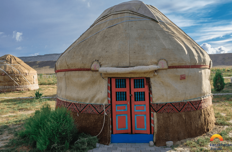 Есть и стилизованные под аутентичное жилье казахов благоустроенные "юрты" со "стенами", например, полностью из дерева, да со всеми удобствами внутри: уборной и душевой комнатой. Здесь есть все как в любом гостиничном номере: отопление, двуспальная кровать, стол, телевизор, телефон, кабельное телевидение и Wi-Fi. Такие курорты действуют круглогодично.