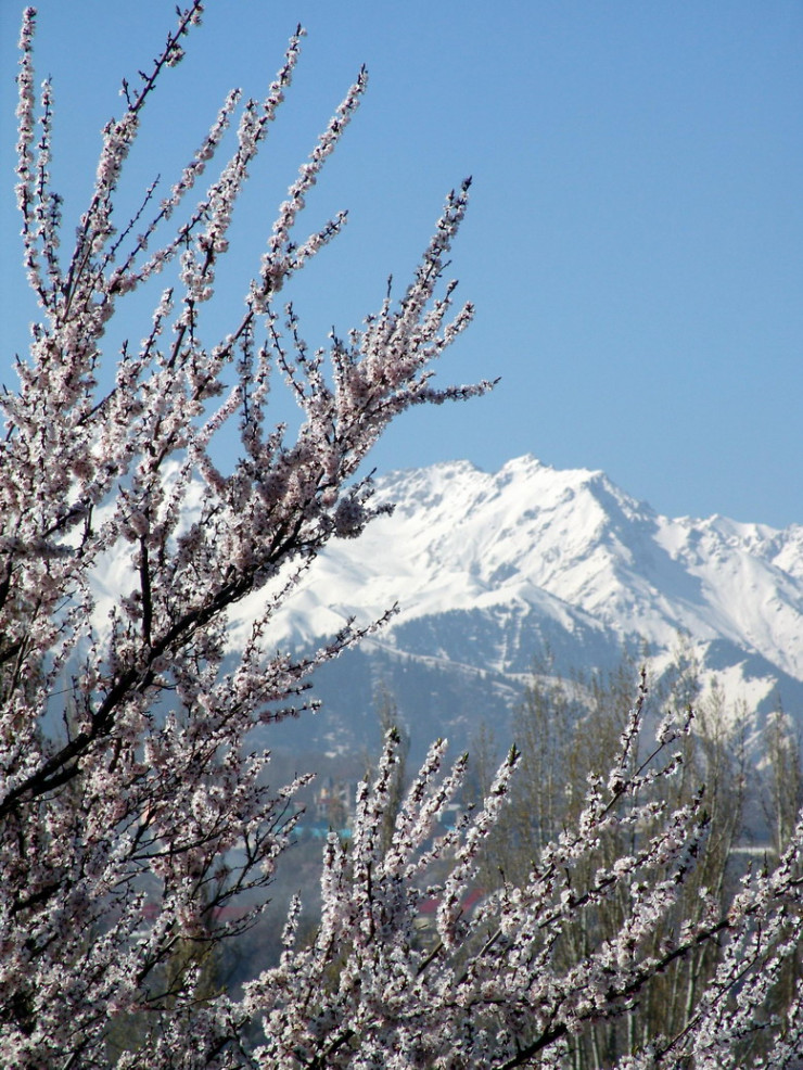 Урюк цветет на фоне снежных гор - алматинская картинка. Фото ©kazakhstan.travel