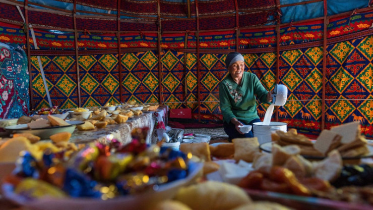 Формирование национальной казахской кухни происходило под действием многих факторов. На нее влияли кочевой образ жизни, постепенный переход к оседлости, изменения в народном хозяйстве. Свою роль в разнообразии национального меню сыграла также большая площадь страны и природно-климатические пояса - переход от степей и равнин к горным массивам, смена засушливых пустынь на плодородную почву с озерами, лесами и реками.  То есть в разных регионах одни и те же блюда могли готовить иначе: там, где было холодно, люди ели больше мяса, пища была жирной и сытной, в южных областях в блюдах было много овощей и круп, в районе Каспия рыба нередко заменяла мясо. В итоге особенностью казахской кухни стало отсутствие строгих рецептурных рамок и правил подачи одних и тех же блюд. Tengritravel.kz совместно с НК "Kazakh Tourism" рассказывает об уникальном казахском меню.