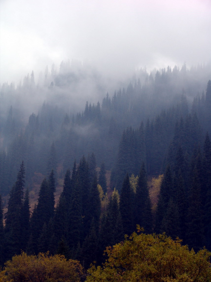 Скоро горы надежно скует морозом и укутает белоснежными сугробами снега, но где-то в укрытых от ветра ущельях деревья по-прежнему разбрасывают последние листья.