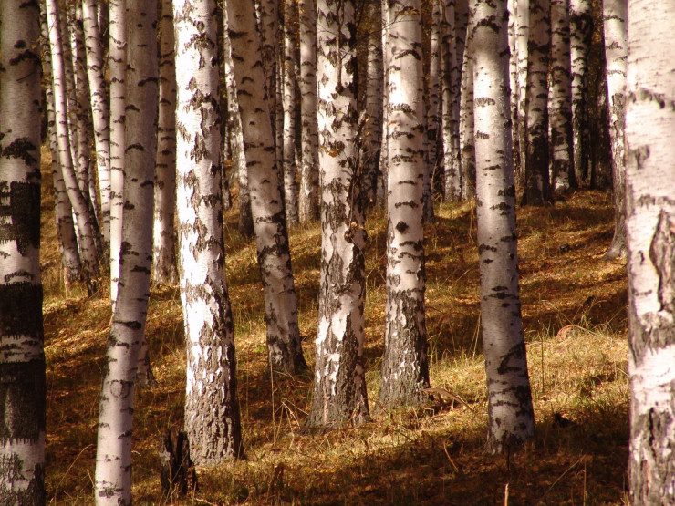 Березы восхищают своим золотым сиянием.