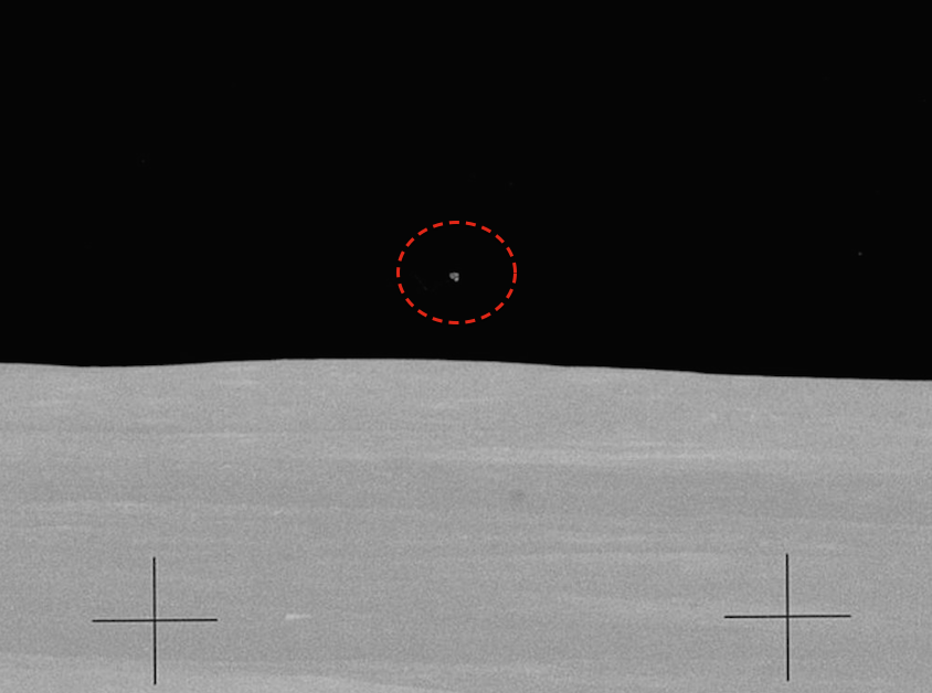 Ниже представлено оригинальное фото, опубликованное NASA. На нем видна слабо светящаяся точка над горизонтом Луны.