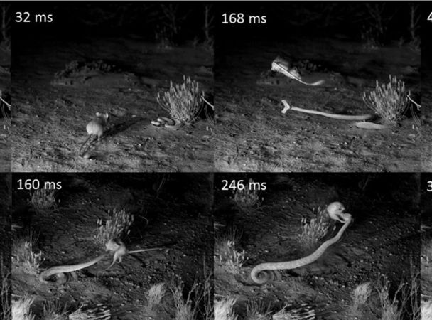 Исследователи установили в аризонской пустыне камеры для скоростной съемки и получили, по их словам, первые детальные кадры маневров, которые прыгуны используют для защиты от змей.