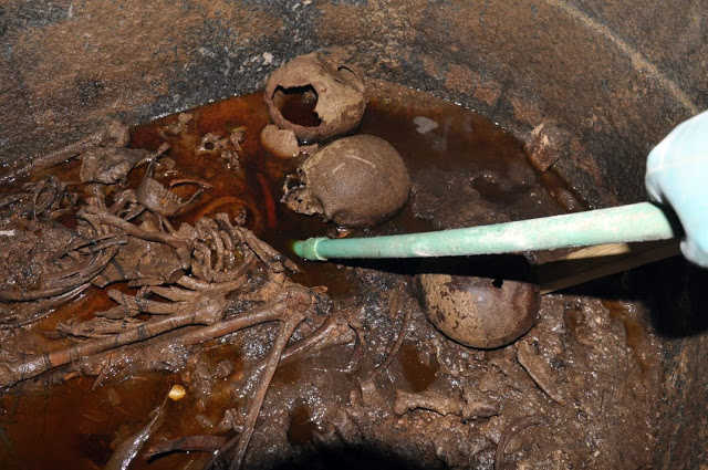 Внутри саркофага, в который, как выяснилось, попала вода, обнаружили кости трех разных людей. На черепе одного из них видны следы от ударов, нанесенных острым предметом. Поэтому ученые предположили, что при жизни захороненные были воинами, пишет Naked-Science.