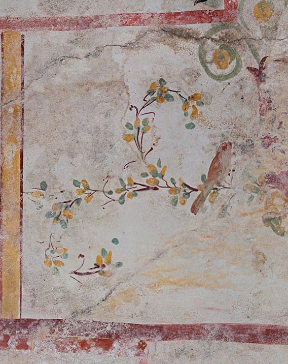 На стенах подземелья изображены воины (один из них, вооруженный луком, мечом и щитом, сражается с пантерой), птицы, танцующие кентавры, гиппокампусы, бог Пан и другие мифологические существа. Помещение получило имя "Комната Сфинкса" - по сюжету одной из фресок.